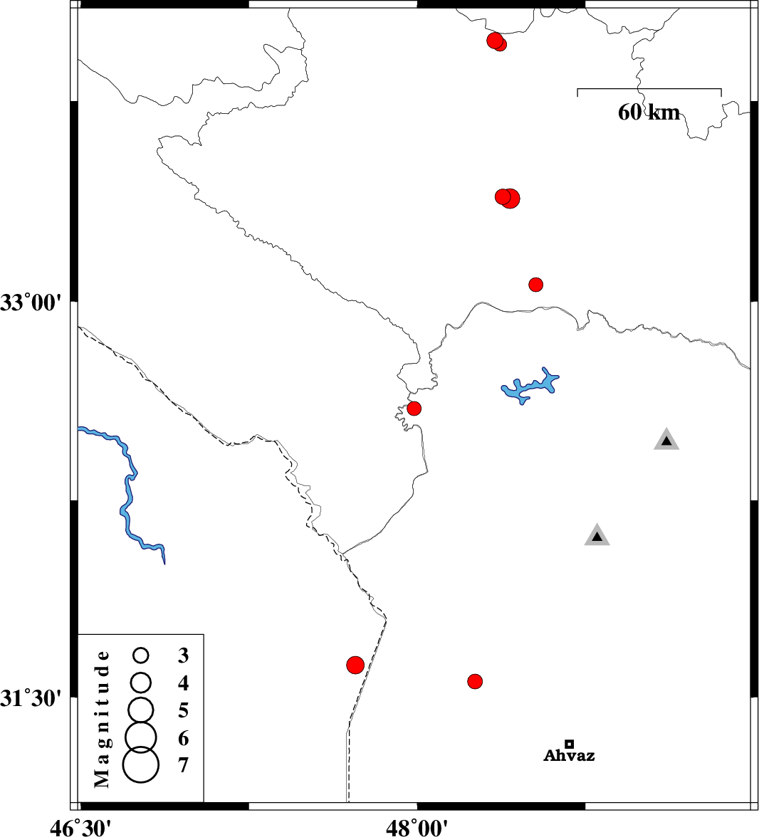 | 2018/07/12 | 15:09:49.3 | 19:39:49.3 | 32.597 | 47.986 | 18 | ML:2.8 | Khoozestan Province, 38 km North-West of Andimeshk | ||