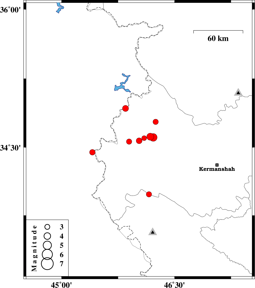 | 2018/07/15 | 07:11:01.0 | 11:41:01.0 | 34.608 | 46.218 | 14 | ML:4.6 | Kermanshah Province, 33 km South-West of Javanrud | ||
