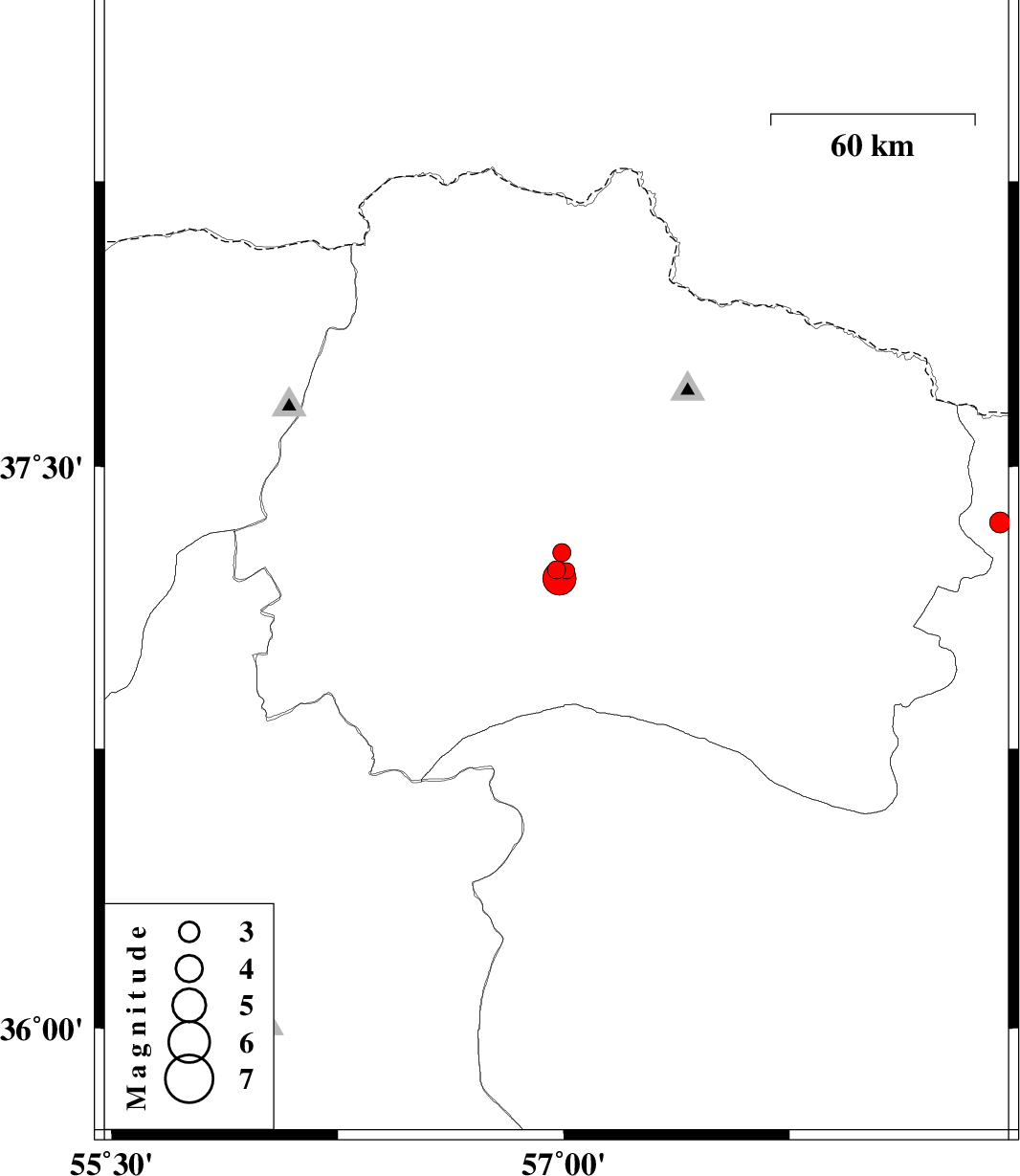| 2018/07/07 | 13:43:40.1 | 18:13:40.1 | 37.352 | 58.448 | 15 | ML:3.1 | Khorasan(center) Province, 28 km North of Quchan |
