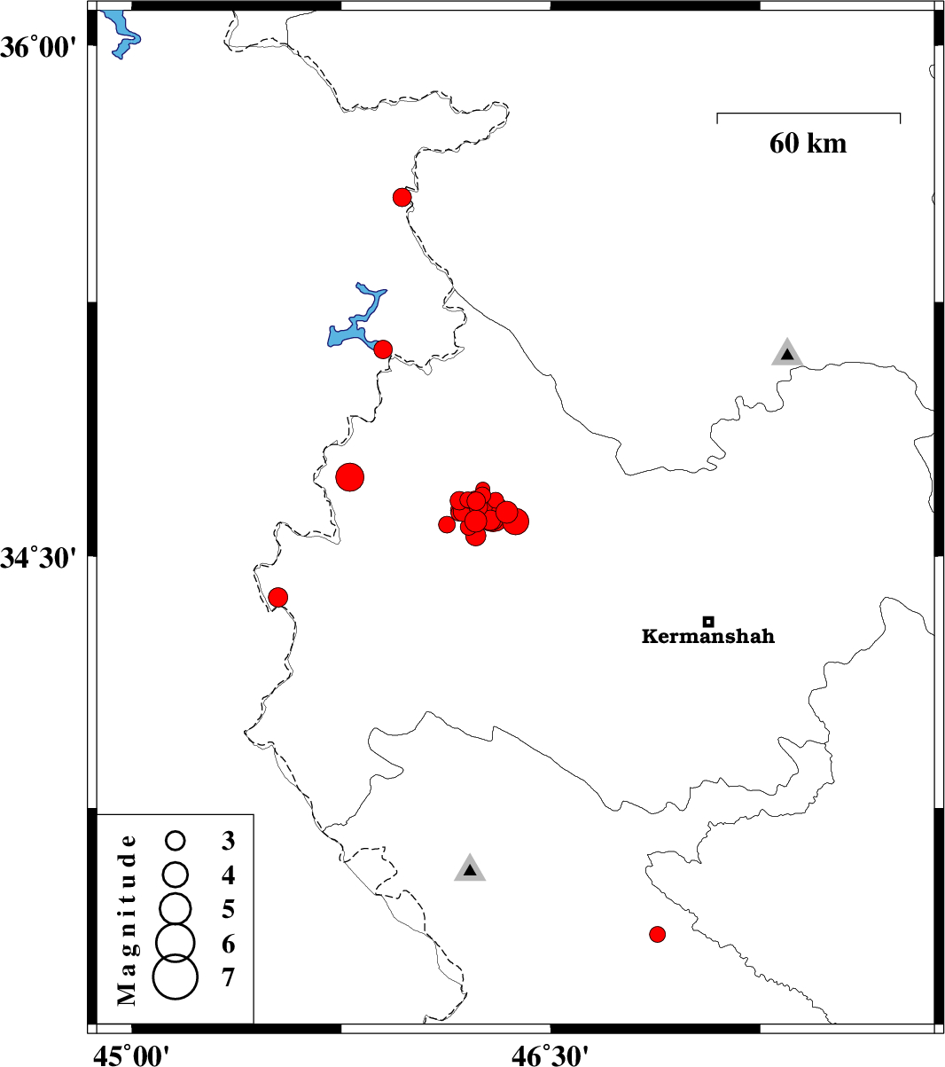 2018/07/24 | 02:34:36.9 | 07:04:36.9 | 34.648 | 46.273 | 15 | ML:3.6 | Kermanshah Province, 26 km South-West of Javanrud | ||