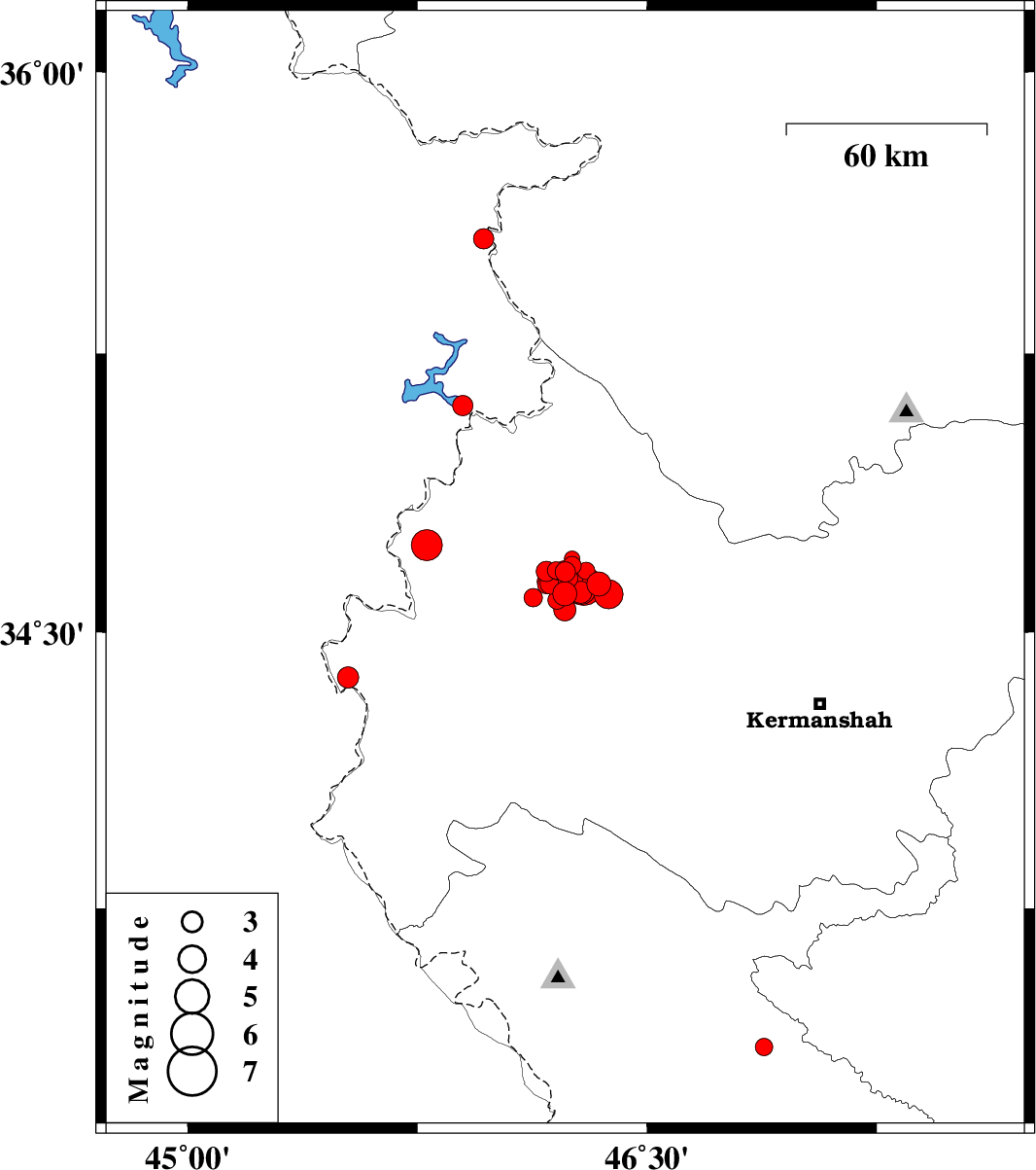 2018/07/24 | 02:34:36.9 | 07:04:36.9 | 34.648 | 46.273 | 15 | ML:3.6 | Kermanshah Province, 26 km South-West of Javanrud | ||