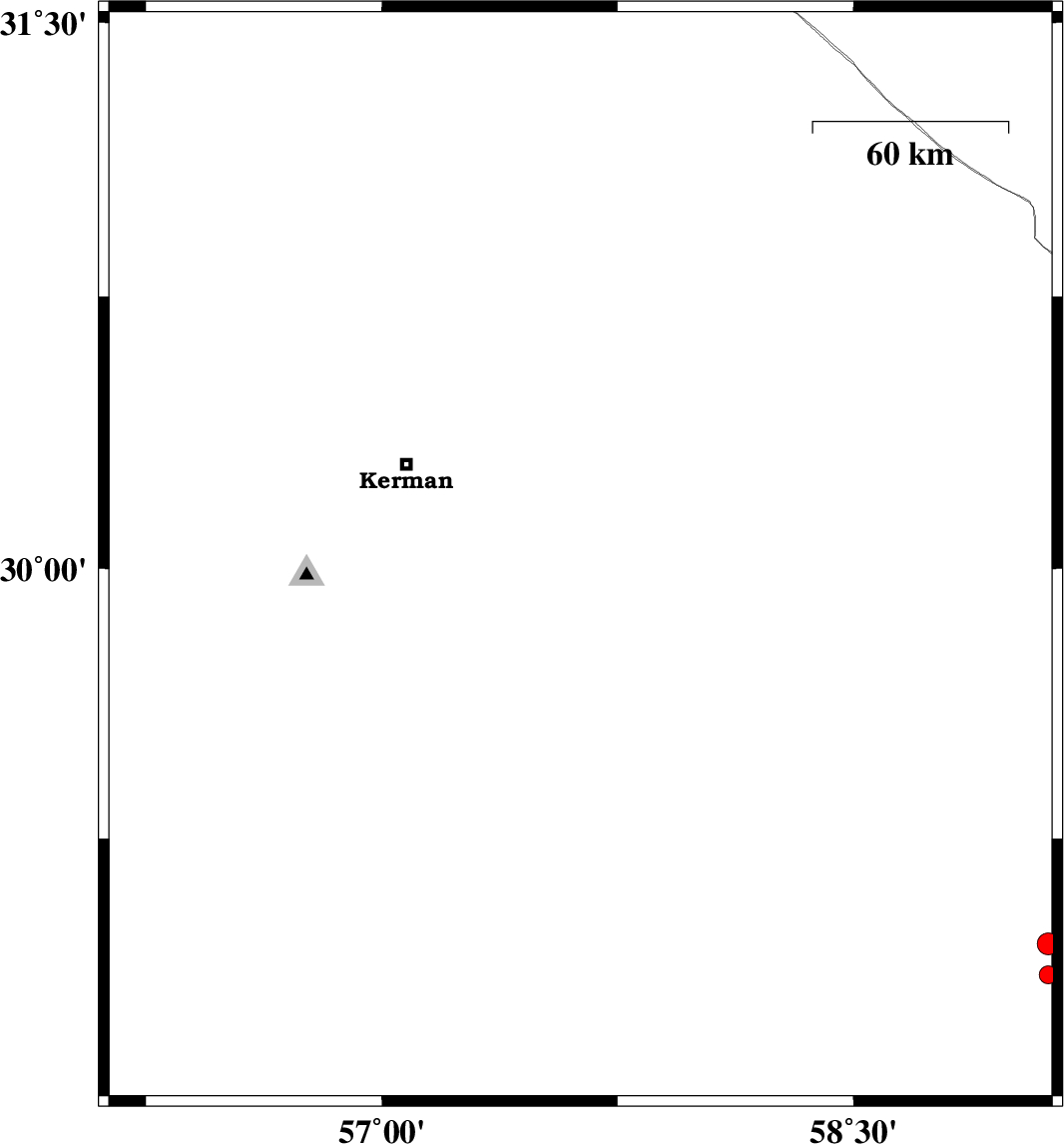 2018/07/25 | 12:10:25.5 | 16:40:25.5 | 30.03 | 57.632 | 16 | ML:2.8 | Kerman Province, 60 km South-East of Kerman | ||