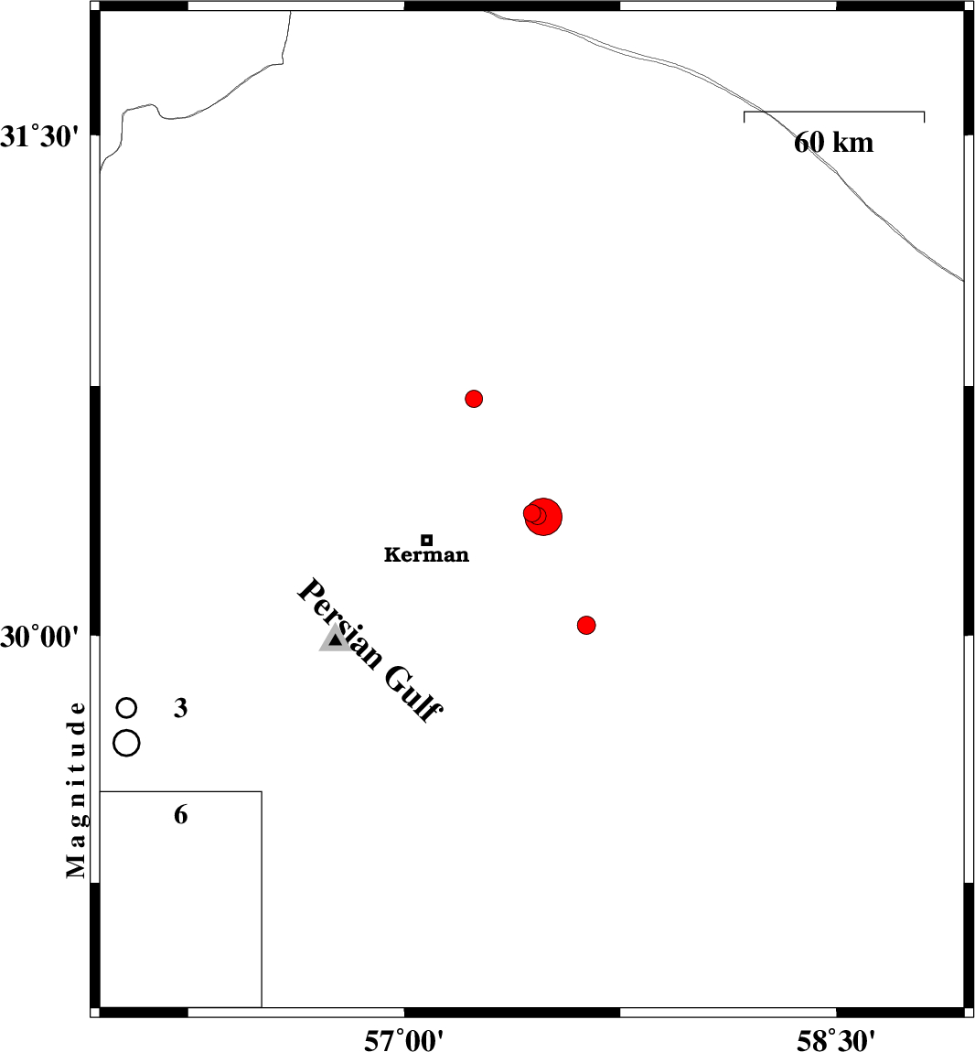 2018/07/25 12:10:25.5 16:40:25.5 30.0357.63216 ML:2.8 Kerman Province, 60 km South-East of Kerman