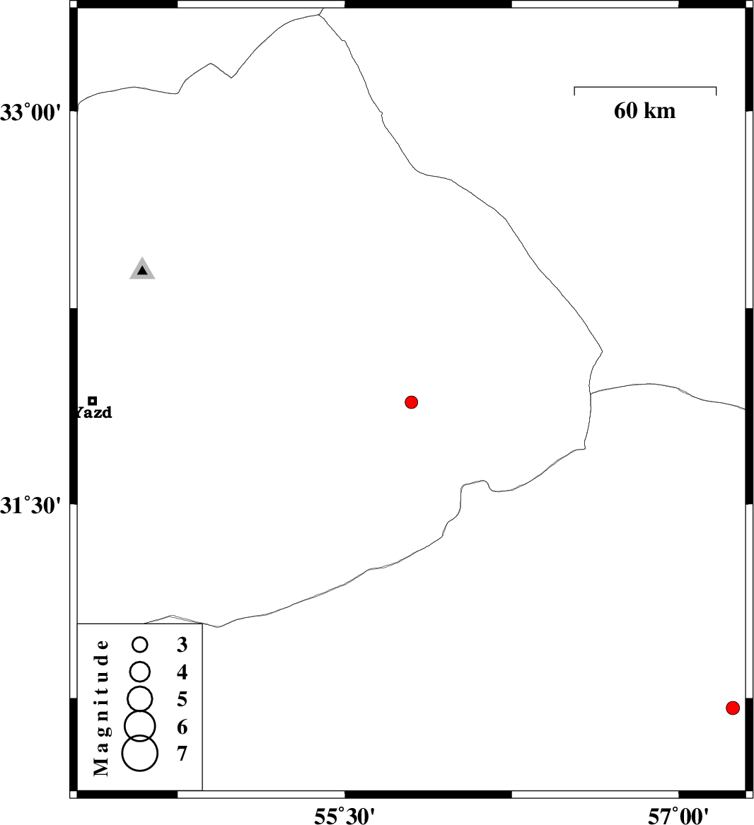 2018/07/30 | 08:10:34.7 | 12:40:34.7 | 31.89 | 55.799 | 14 | ML:2.5 | Yazd Province, 50 km North-East of Bafq | ||