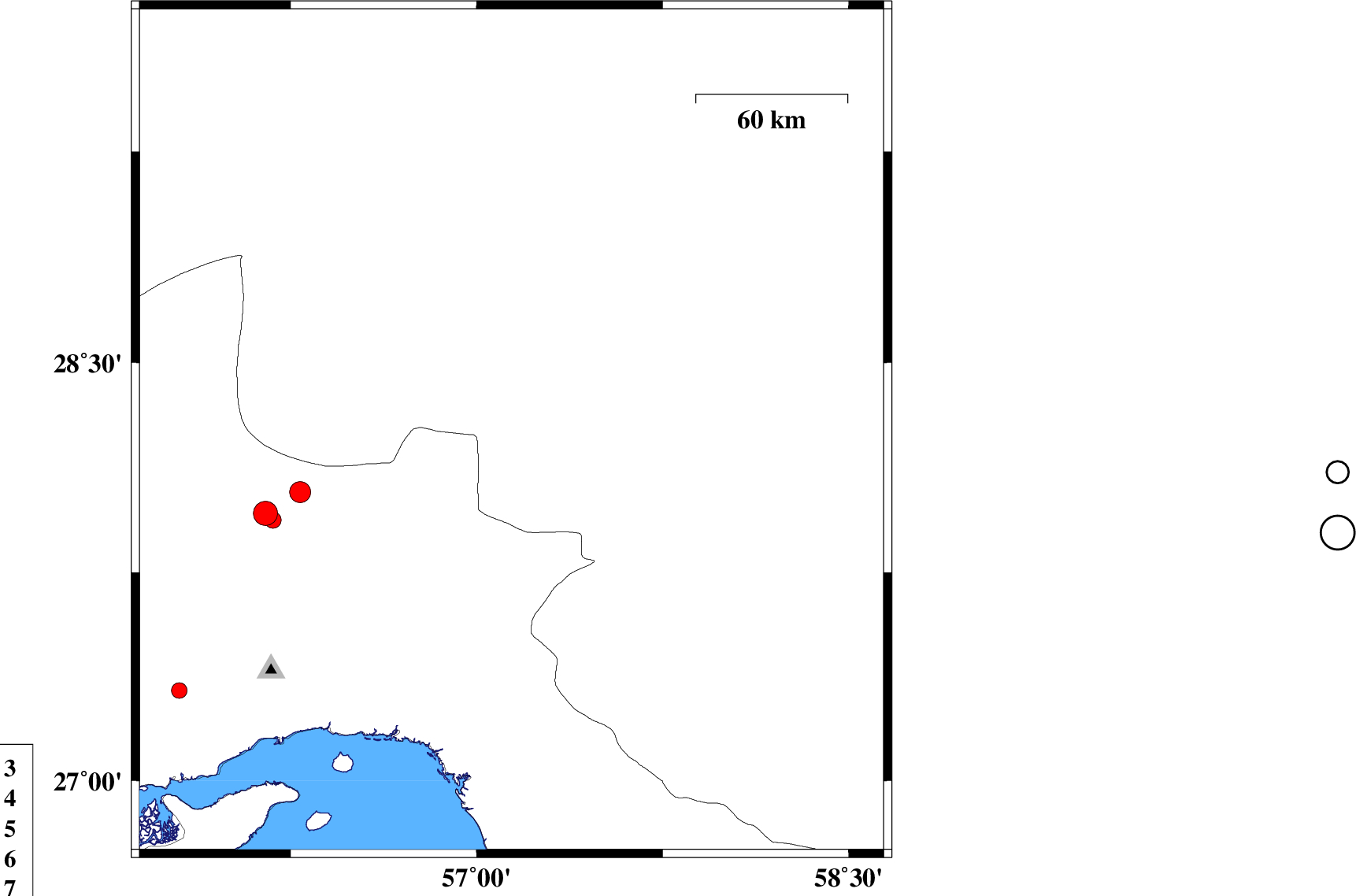 2018/07/28 20:59:22.7 01:29:22.7 27.61856.79314 ML:2.8 Hormozgan Province, 49 km North-West of Dehbarez