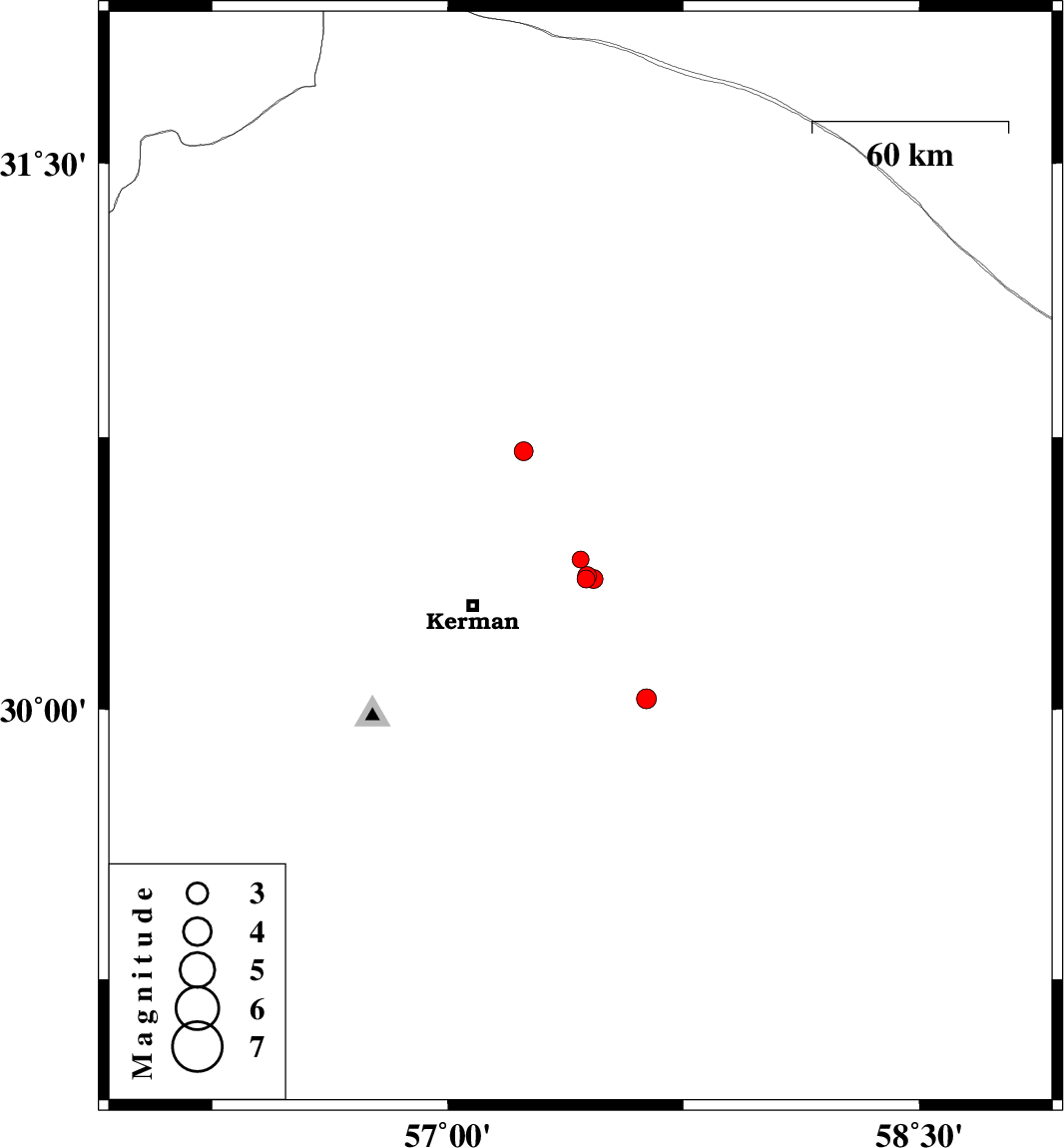 2018/07/26 | 20:46:02.2 | 01:16:02.2 | 30.369 | 57.443 | 14 | ML:2.7 | Kerman Province, 36 km -East of Kerman | ||