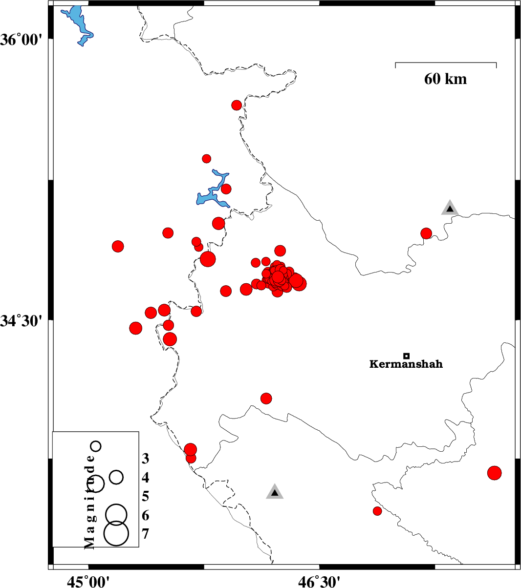2018/07/30 | 03:02:57.7 | 07:32:57.7 | 34.677 | 46.254 | 6 | ML:3.2 | Kermanshah Province, 25 km South-West of Javanrud | ||