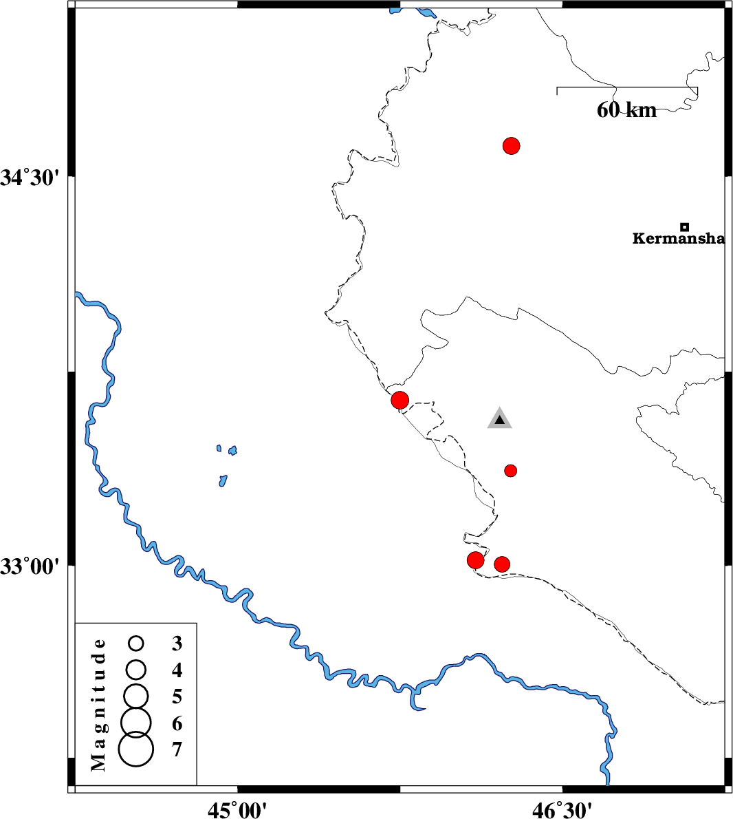 2018/08/08 | 13:11:42.9 | 17:41:42.9 | 34.616 | 46.264 | 15 | ML:3.5 | Kermanshah Province, 29 km South-West of Javanrud | ||