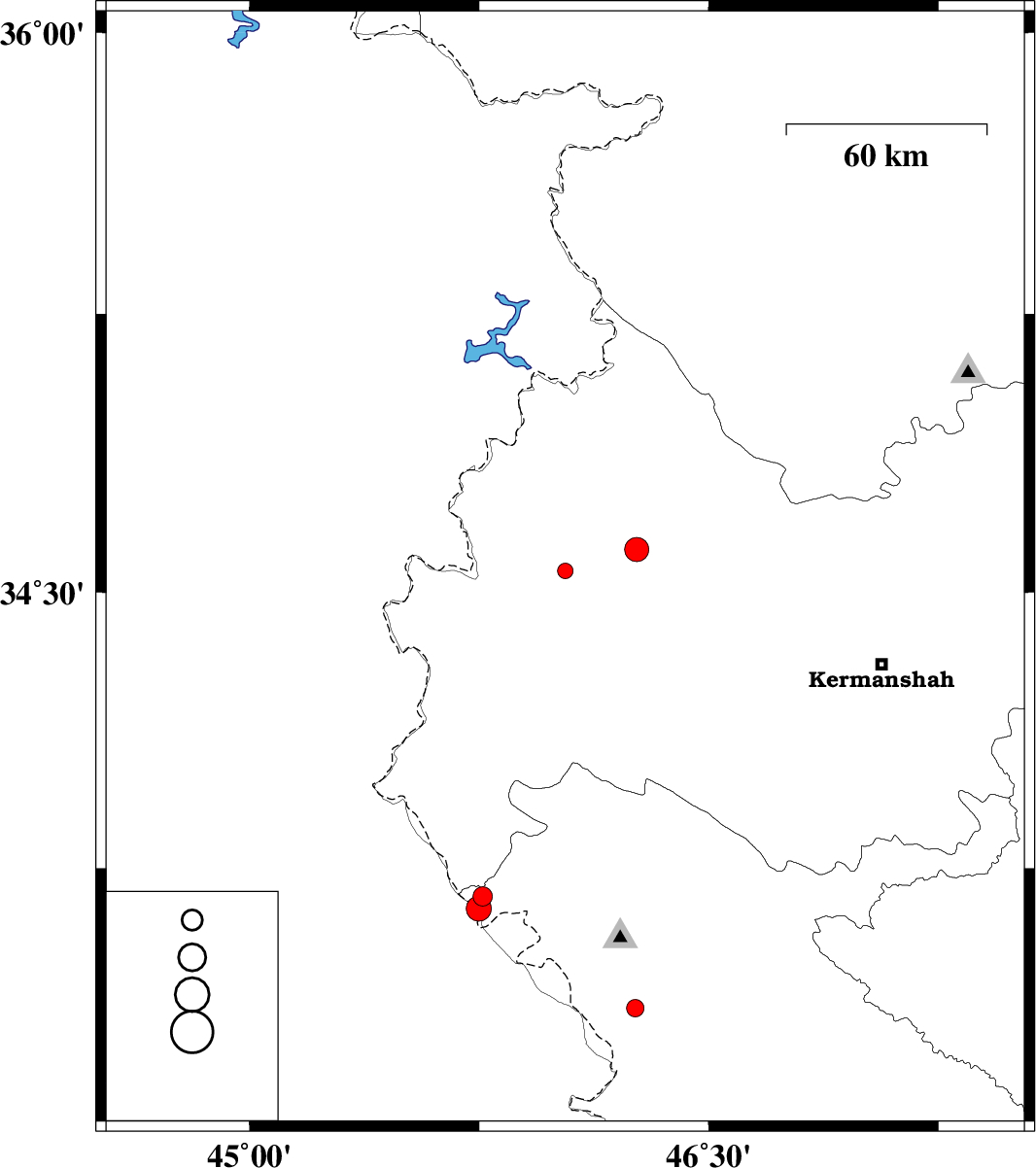 2018/08/12 | 16:56:26.4 | 21:26:26.4 | 34.558 | 46.031 | 14 | ML:2.3 | Kermanshah Province, 17 km -East of Sar-e pol-e zahab | ||