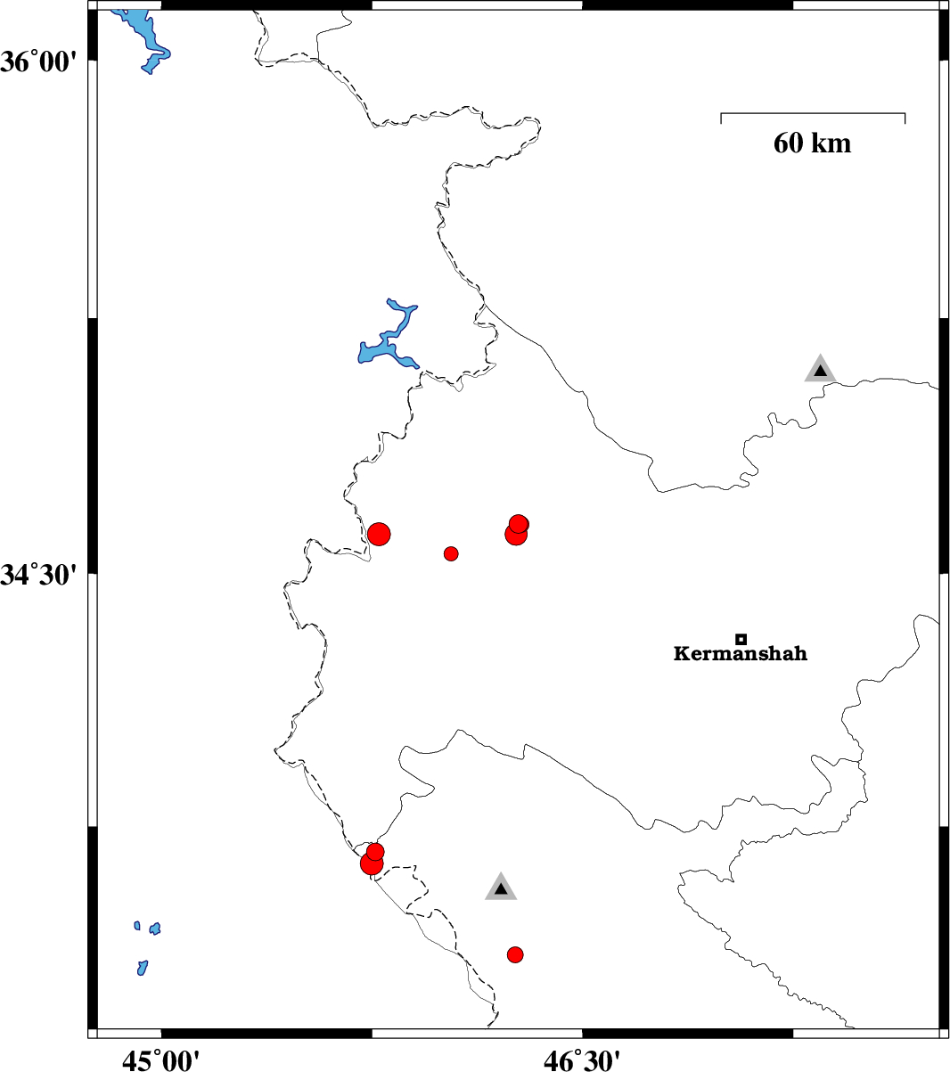 2018/08/12 | 16:56:26.4 | 21:26:26.4 | 34.558 | 46.031 | 14 | ML:2.3 | Kermanshah Province, 17 km -East of Sar-e pol-e zahab | ||