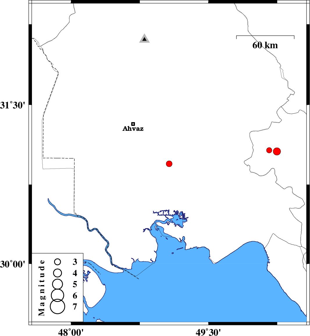 | 2018/08/13 | 14:02:37.4 | 18:32:37.4 | 30.946 | 49.071 | 15 | ML:3 | Khoozestan Province, 45 km North-West of Bandar-e mahshahr | ||