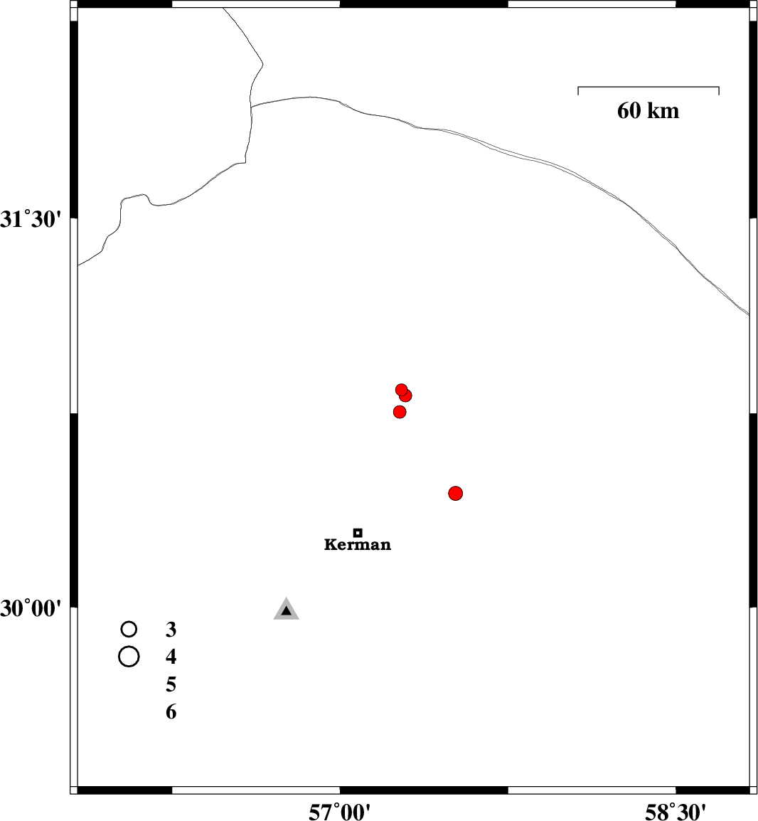 | 2018/08/14 | 22:51:50.8 | 03:21:50.8 | 30.779 | 57.345 | 14 | ML:2.5 | Kerman Province, 60 km North-East of Kerman | ||