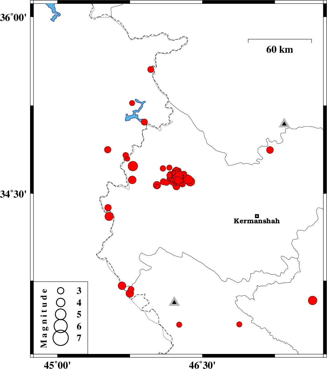 2018/07/30 | 03:02:57.7 | 07:32:57.7 | 34.677 | 46.254 | 6 | ML:3.2 | Kermanshah Province, 25 km South-West of Javanrud | ||