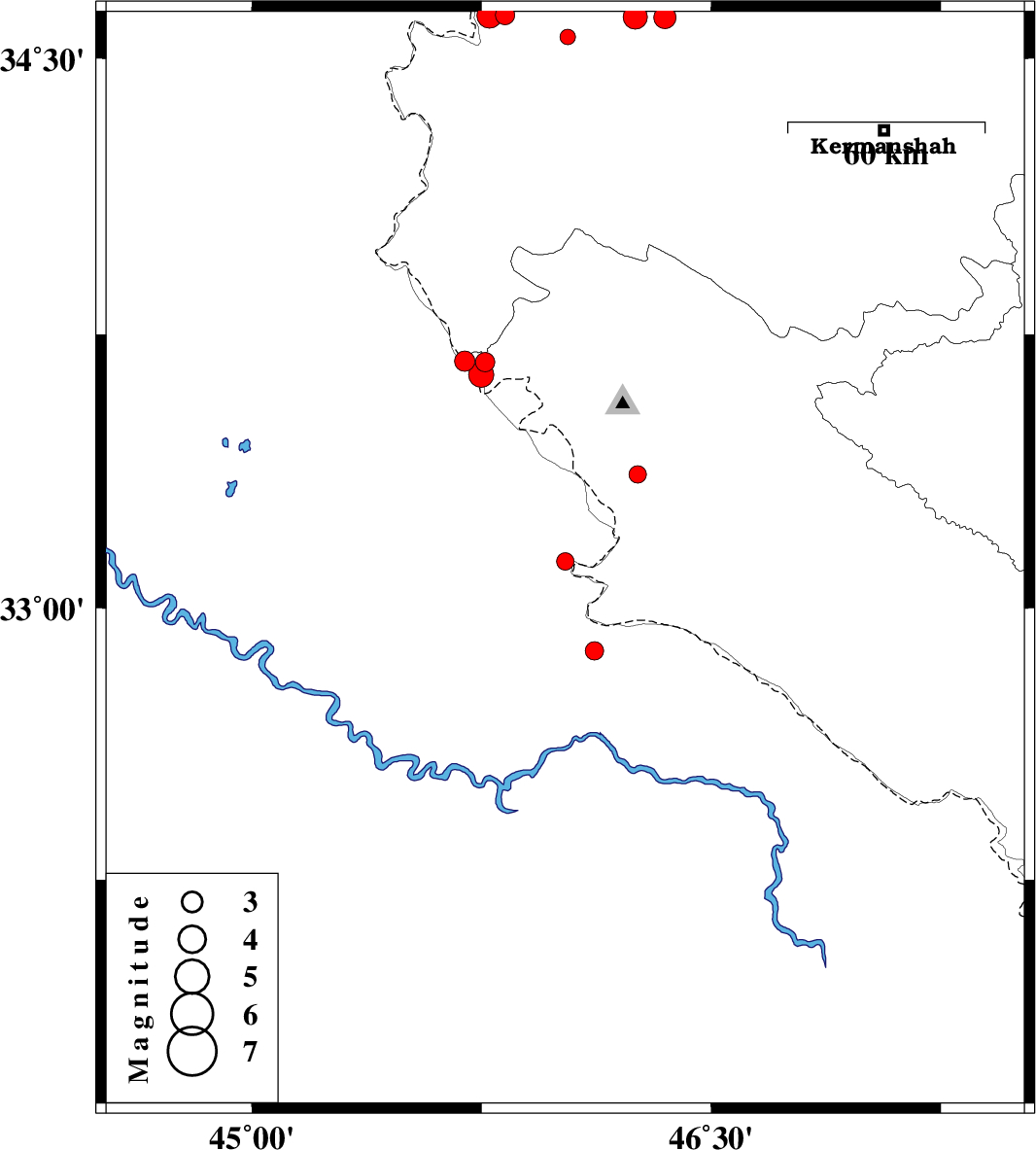 2018/08/12 | 04:16:21.9 | 08:46:21.9 | 32.882 | 46.119 | 6 | ML:2.7 | Iraq, 27 km South of Mehran | ||