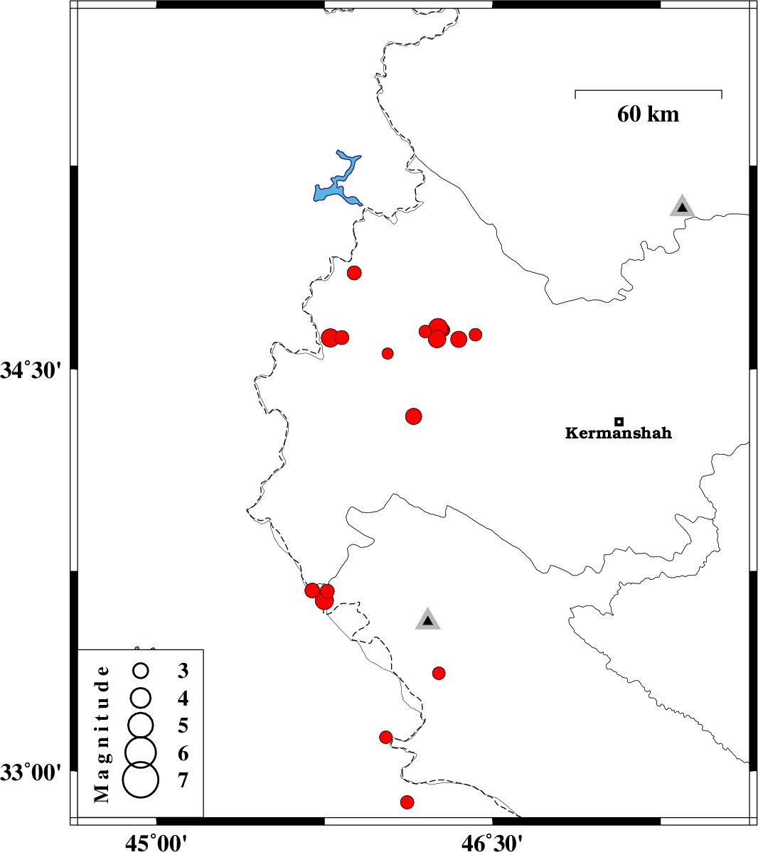 2018/08/15 | 23:22:05.3 | 03:52:05.3 | 34.612 | 46.252 | 15 | ML:3.5 | Kermanshah Province, 30 km South-West of Javanrud | ||