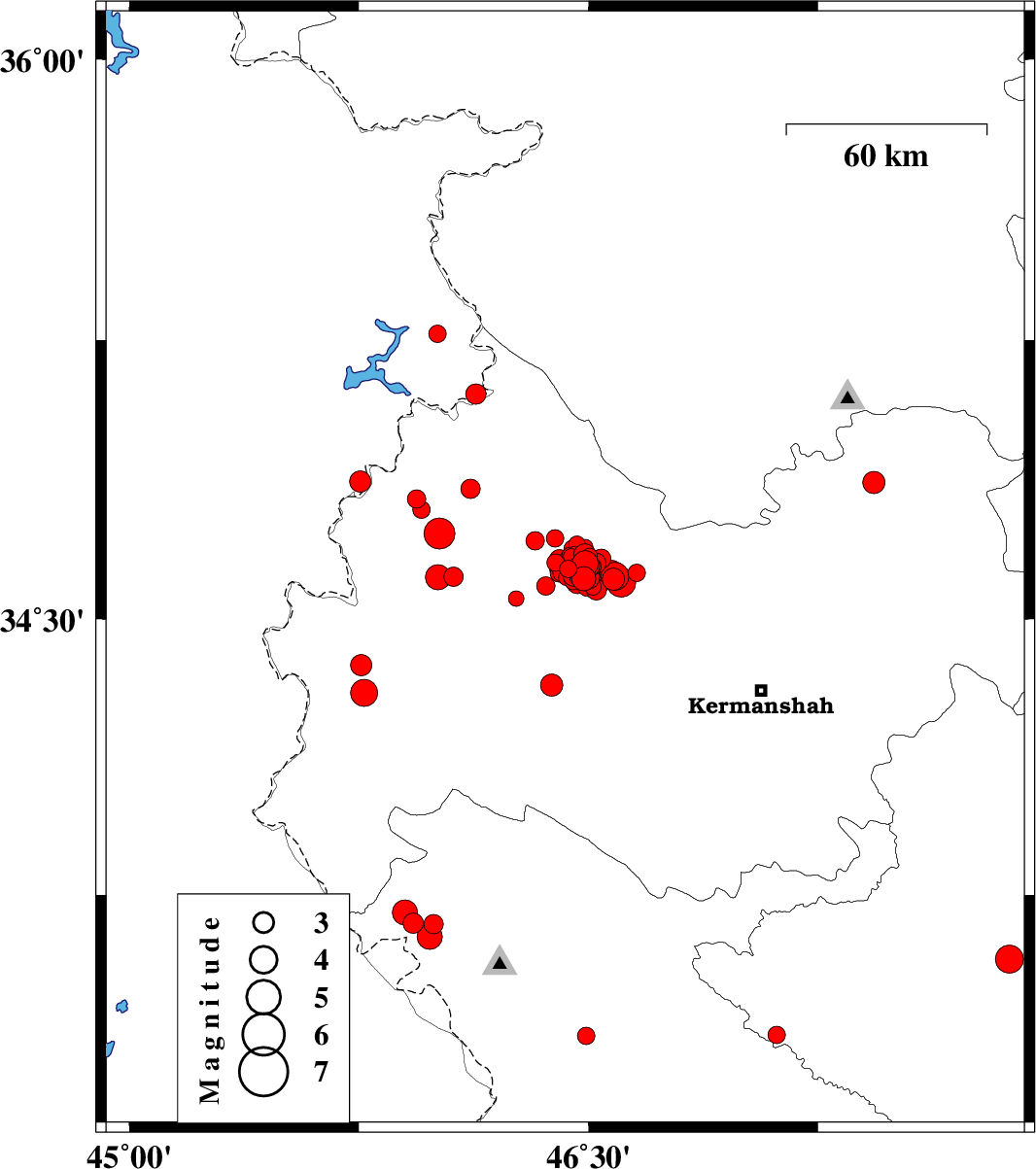 2018/07/30 | 03:02:57.7 | 07:32:57.7 | 34.677 | 46.254 | 6 | ML:3.2 | Kermanshah Province, 25 km South-West of Javanrud | ||