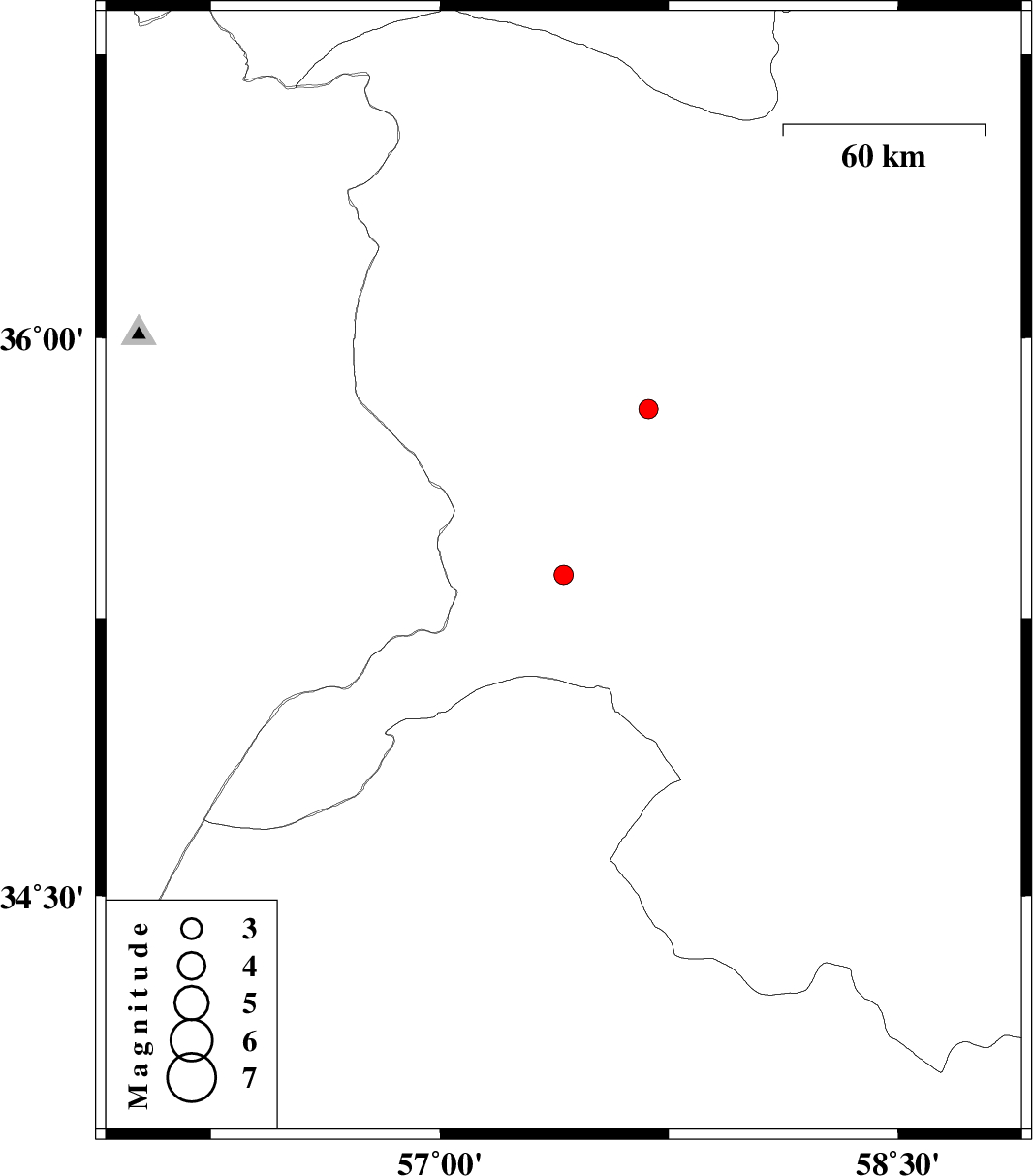 | 2018/08/19 | 21:20:59.4 | 01:50:59.4 | 35.366 | 57.405 | 15 | ML:2.8 | Khorasan(center) Province, 51 km North-West of Bardeskan | ||