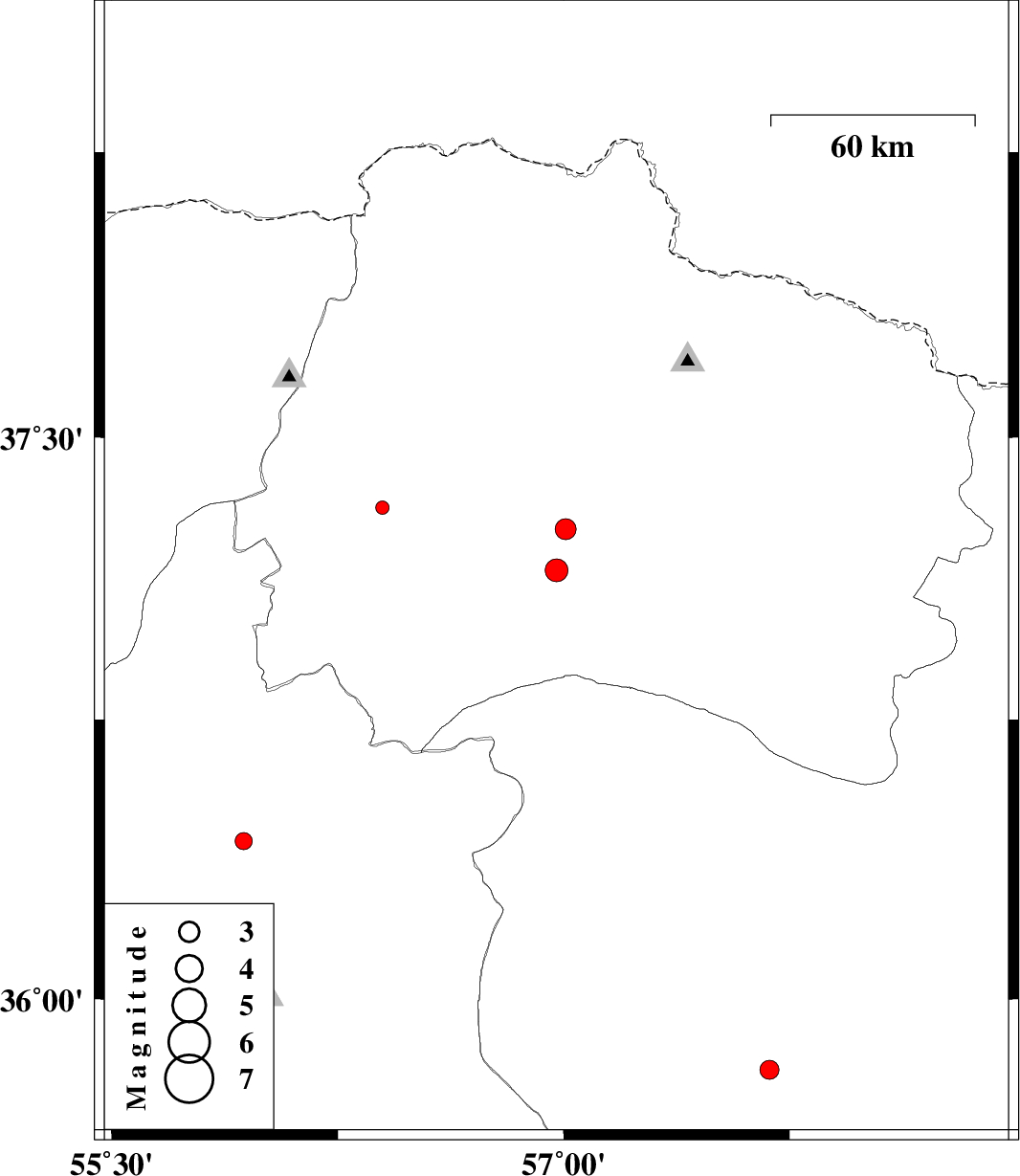 | 2018/08/20 | 22:43:21.7 | 03:13:21.7 | 37.257 | 57.006 | 15 | ML:3.1 | Khorasan(north) Province, 33 km South of Ashkhaneh | ||
