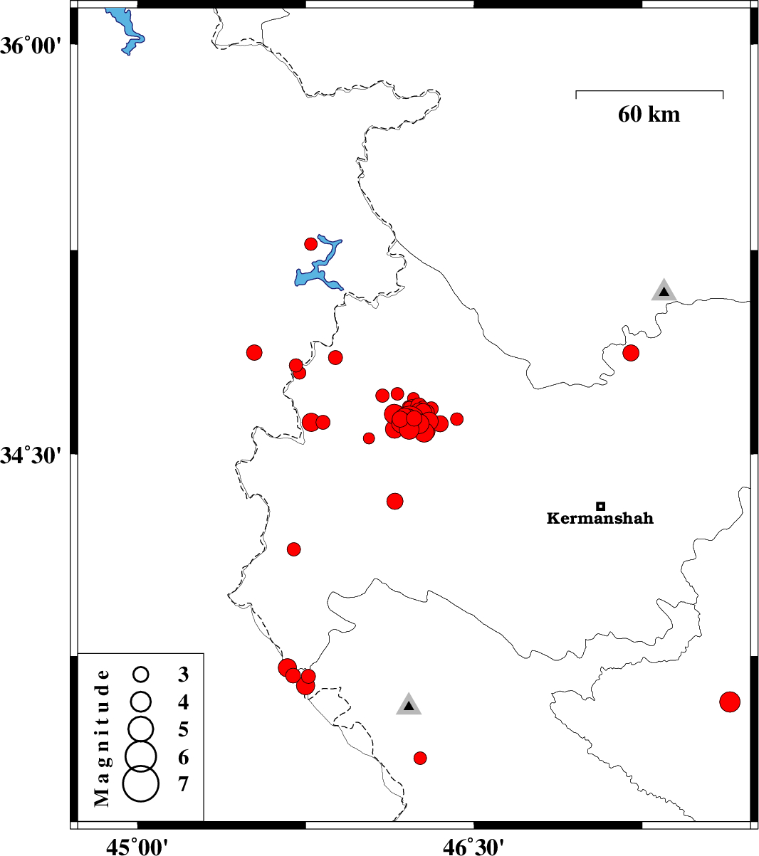 2018/07/30 | 03:02:57.7 | 07:32:57.7 | 34.677 | 46.254 | 6 | ML:3.2 | Kermanshah Province, 25 km South-West of Javanrud | ||