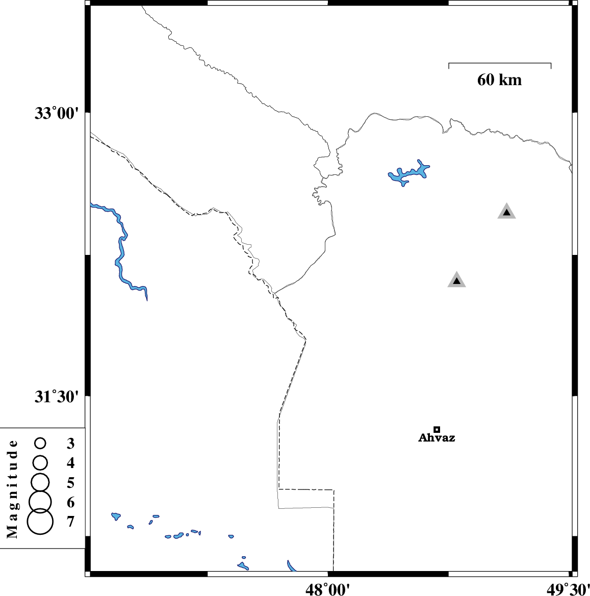 | 2018/08/27 | 23:45:57.5 | 04:15:57.5 | 32.06 | 48.02 | 15 | ML:2.9 | Khoozestan Province, 27 km South-West of Shush |