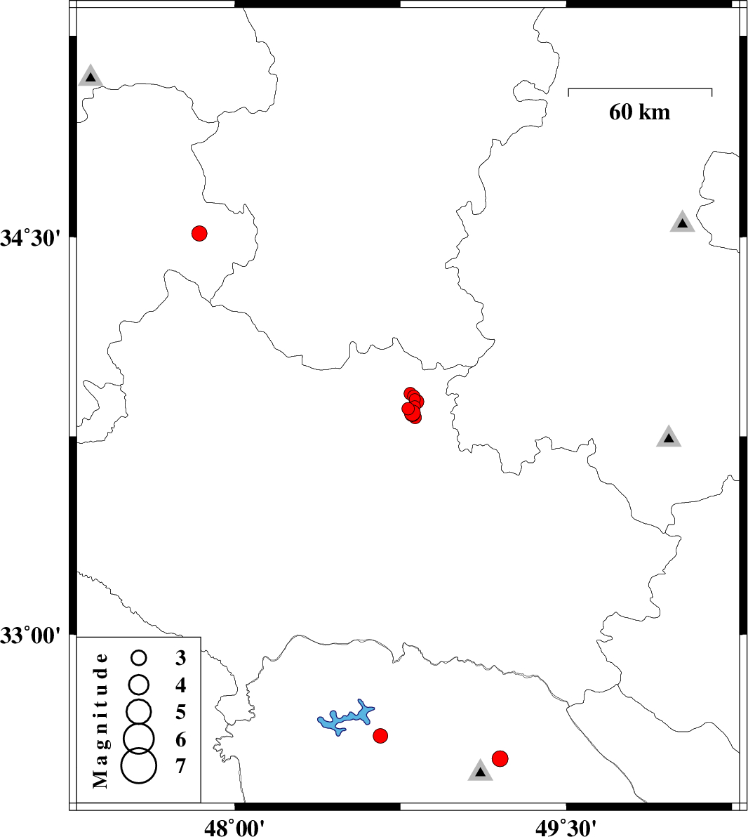 2018/08/14 | 03:07:48.0 | 07:37:48.0 | 34.514 | 47.839 | 14 | ML:3.1 | Kermanshah Province, 10 km -West of Kangavar | ||
