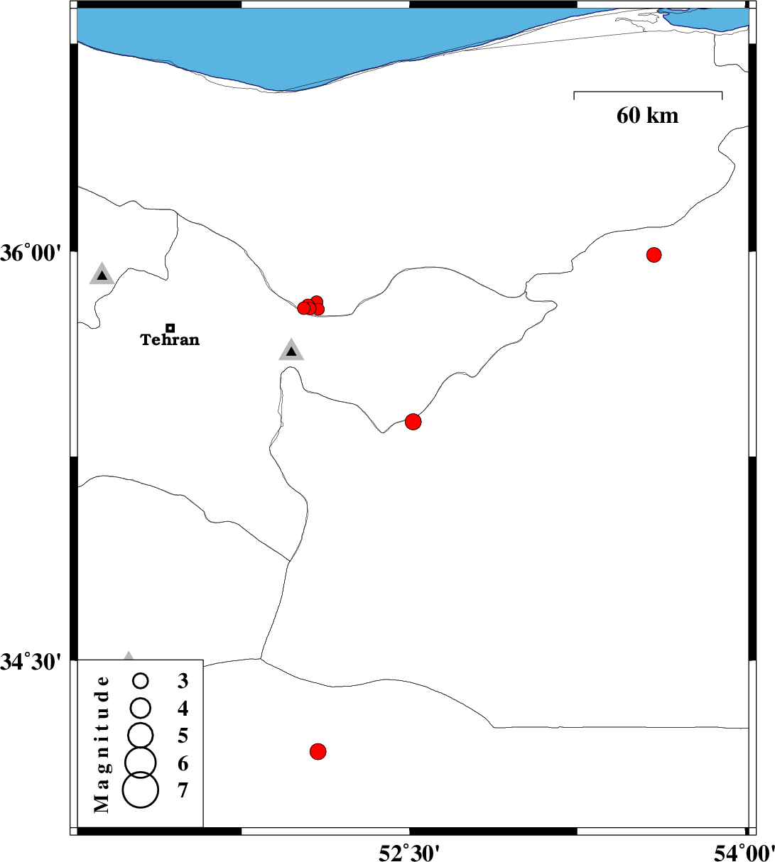 | 2018/08/21 | 02:04:00.1 | 06:34:00.1 | 35.986 | 53.593 | 14 | ML:3 | Semnan Province, 50 km North-East of Semnan |