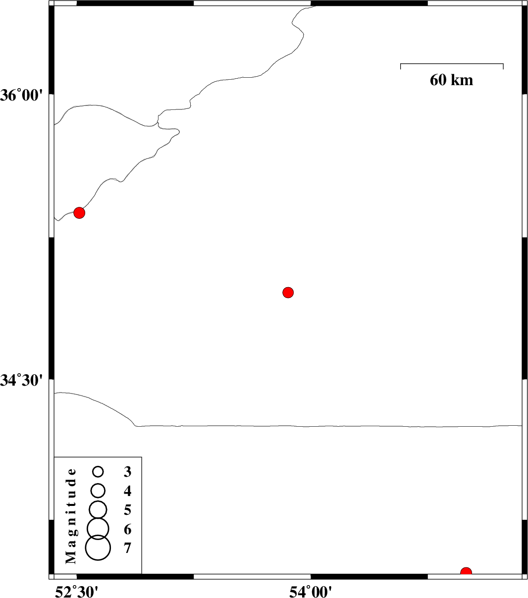 | 2018/09/02 | 05:17:10.3 | 09:47:10.3 | 35.378 | 52.516 | 15 | ML:3.2 | Semnan Province, 24 km North-East of Garmsar | ||