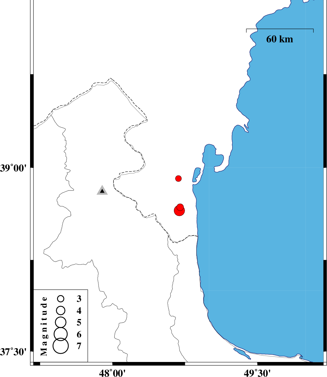 | 2018/08/28 | 12:57:14.8 | 17:27:14.8 | 38.652 | 48.692 | 23 | ML:4.9 | Azerbaijan, 29 km North-West of Astara |