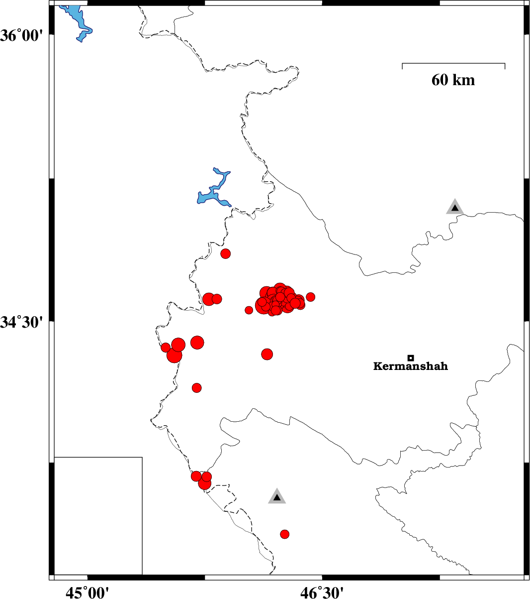 2018/08/25 | 22:13:25.8 | 02:43:25.8 | 34.62 | 46.212 | 15 | ML:6 | Kermanshah Province, 32 km South-West of Javanrud | ||