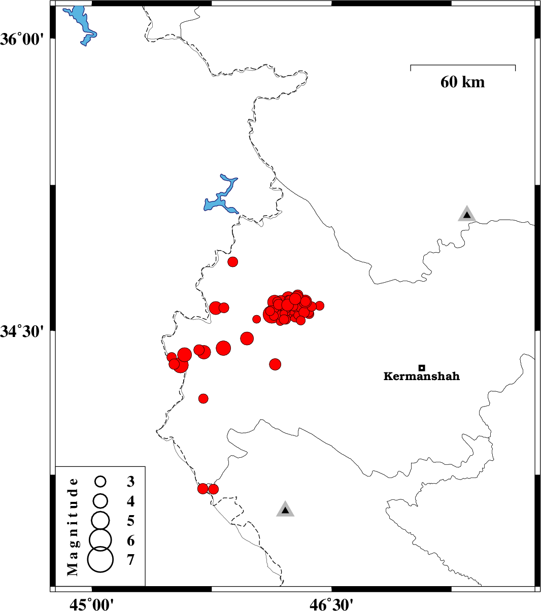 2018/08/25 | 22:13:25.8 | 02:43:25.8 | 34.62 | 46.212 | 15 | ML:6 | Kermanshah Province, 32 km South-West of Javanrud | ||