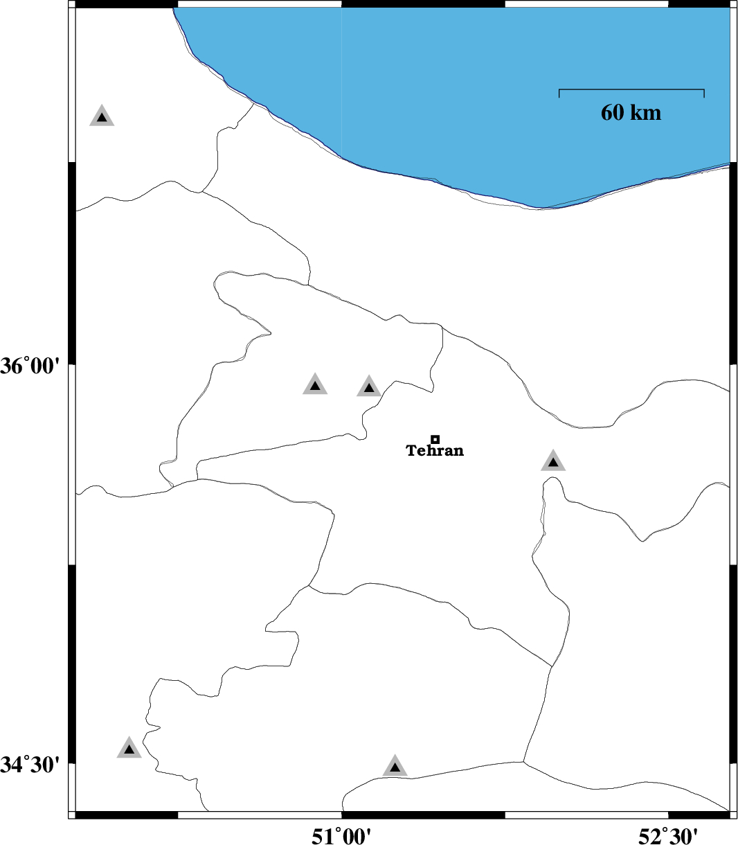 | 2018/09/10 | 07:09:57.9 | 11:39:57.9 | 35.817 | 51.28 | 15 | ML:1.9 | Tehran Province, 15 km -West of Tajrish | ||