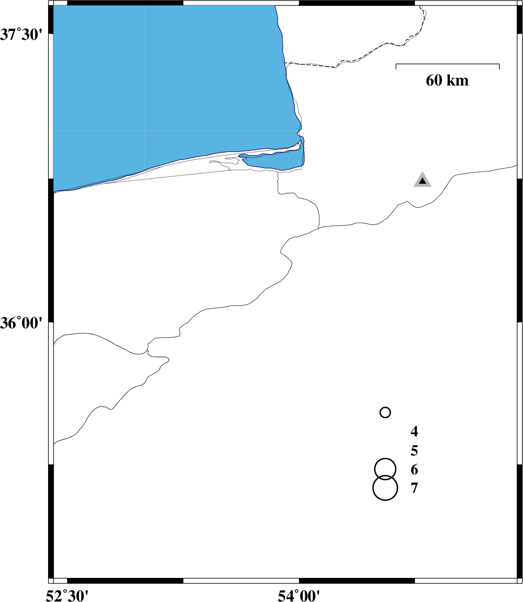 | 2018/09/11 | 23:25:45.2 | 03:55:45.2 | 36.158 | 53.936 | 14 | ML:3.1 | Semnan Province, 37 km -West of Damghan |