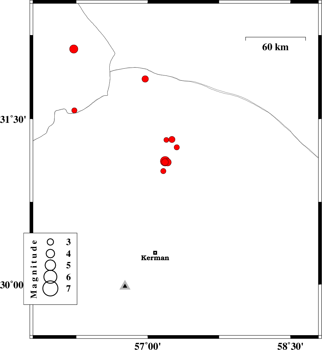 2018/09/14 | 00:09:51.9 | 04:39:51.9 | 30.83 | 57.307 | 16 | ML:3.5 | Kerman Province, 71 km -East of Zarand | ||