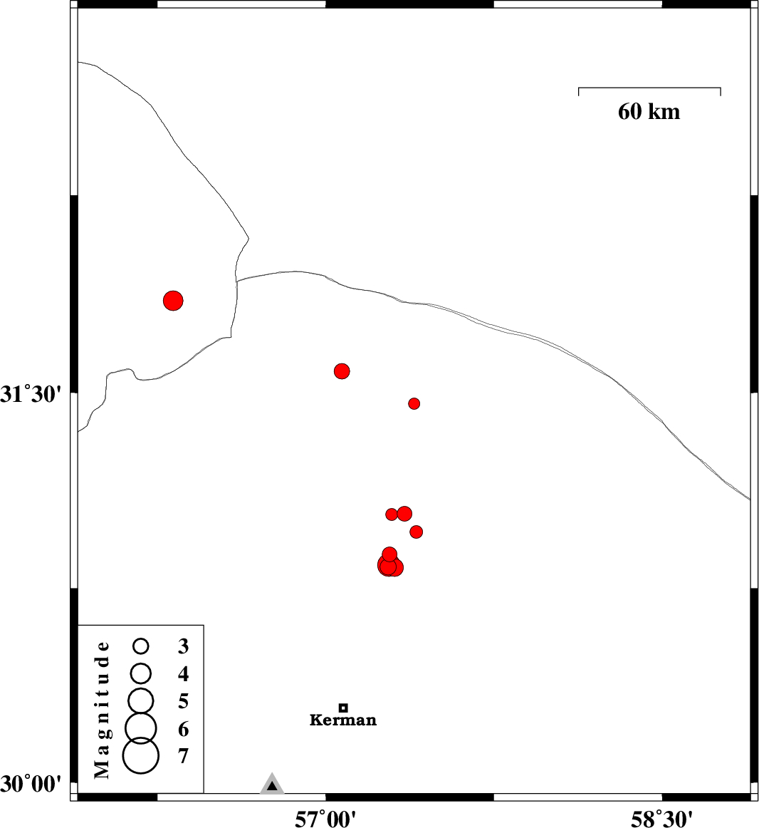 2018/09/15 | 20:44:42.3 | 01:14:42.3 | 30.88 | 57.285 | 14 | ML:2.9 | Kerman Province, 69 km -East of Zarand | ||
