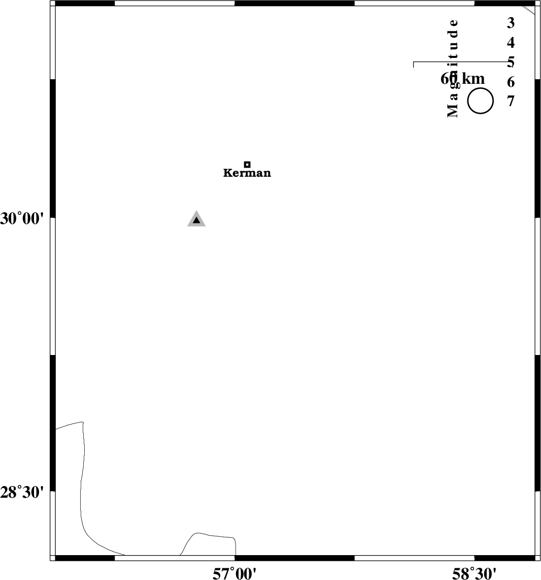 2018/09/15 | 20:44:42.3 | 01:14:42.3 | 30.88 | 57.285 | 14 | ML:2.9 | Kerman Province, 69 km -East of Zarand | ||