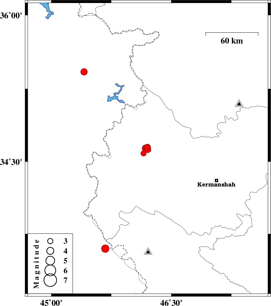 2018/09/20 | 17:41:30.6 | 22:11:30.6 | 34.651 | 46.198 | 6 | ML:3.2 | Kermanshah Province, 31 km South-West of Javanrud | ||