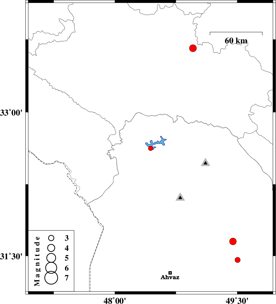 | 2018/09/23 | 08:51:53.1 | 12:21:53.1 | 32.625 | 48.438 | 14 | ML:2.5 | Khoozestan Province, 20 km North of Andimeshk | ||