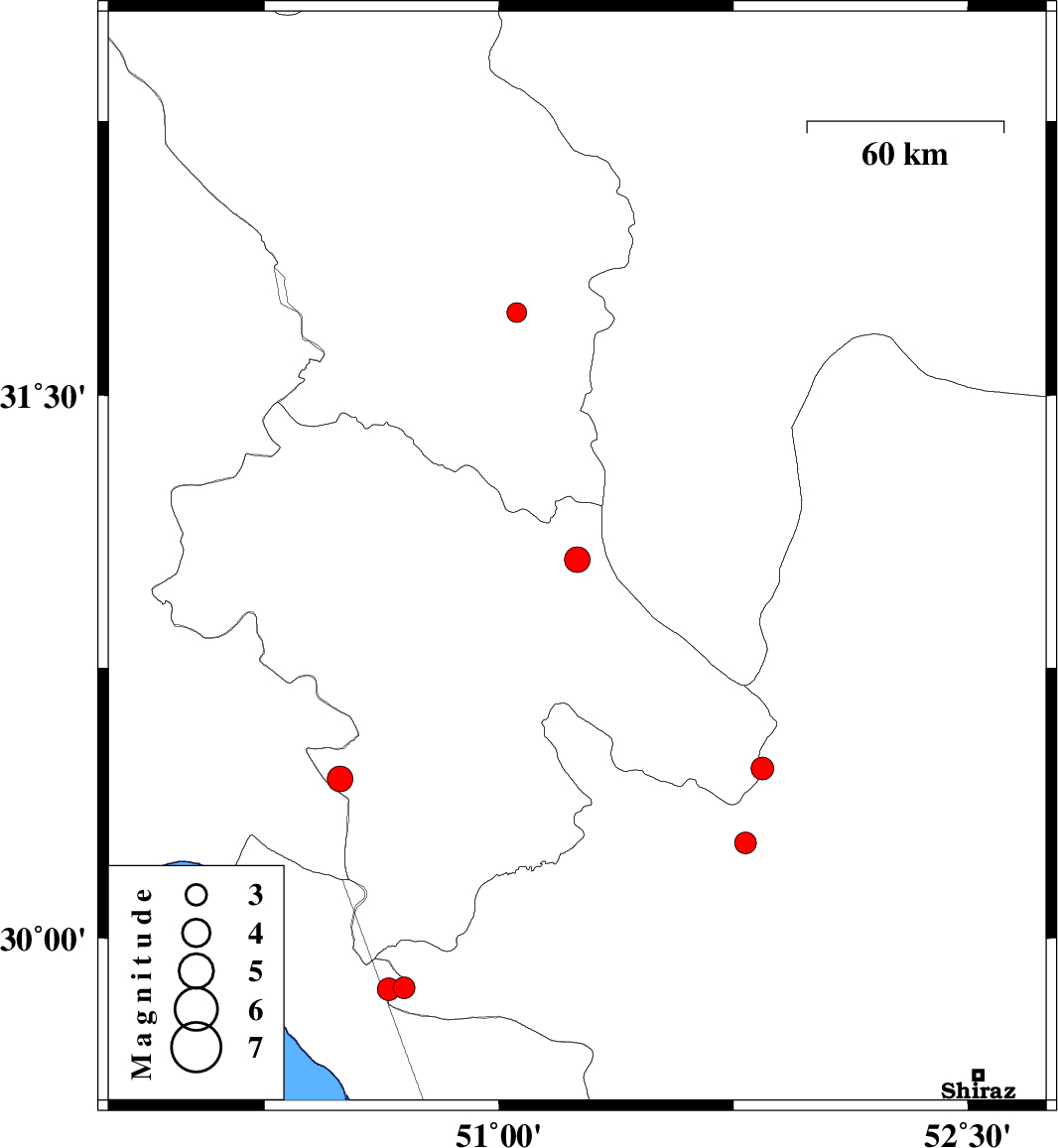 2018/09/10 | 12:35:26.3 | 17:05:26.3 | 29.858 | 50.647 | 6 | ML:3.2 | Bushehr Province, 34 km North-East of Bandar-e genaveh | ||