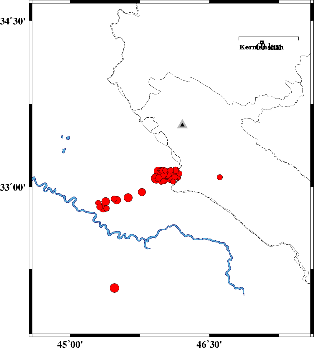 2018/09/03 | 08:25:22.1 | 12:55:22.1 | 34.387 | 45.701 | 15 | ML:3.8 | Kermanshah Province, 18 km South-East of Qasr-E-Shirin | ||