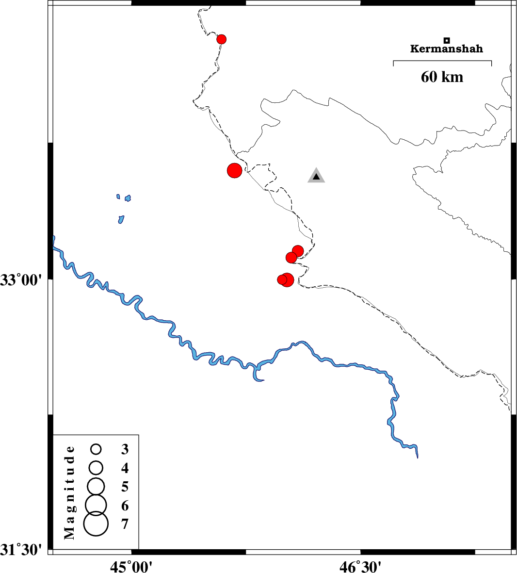 2018/09/23 | 22:17:53.7 | 01:47:53.7 | 32.996 | 46.018 | 6 | ML:4.1 | Iraq, 20 km South-West of Mehran | ||