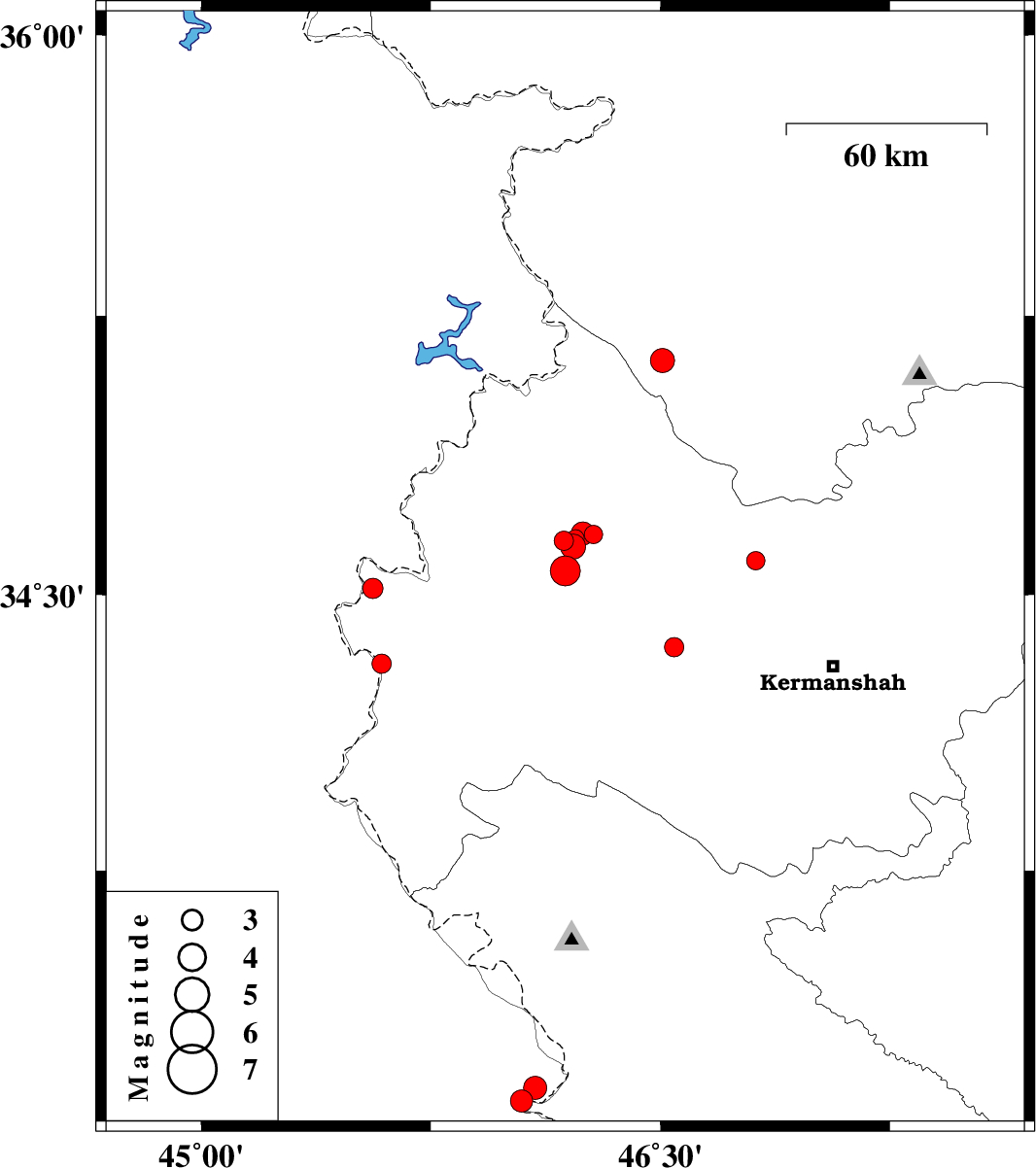 2018/09/24 | 04:42:18.3 | 08:12:18.3 | 34.591 | 46.811 | 15 | ML:2.7 | Kermanshah Province, 28 km South-West of Kamyaran | ||