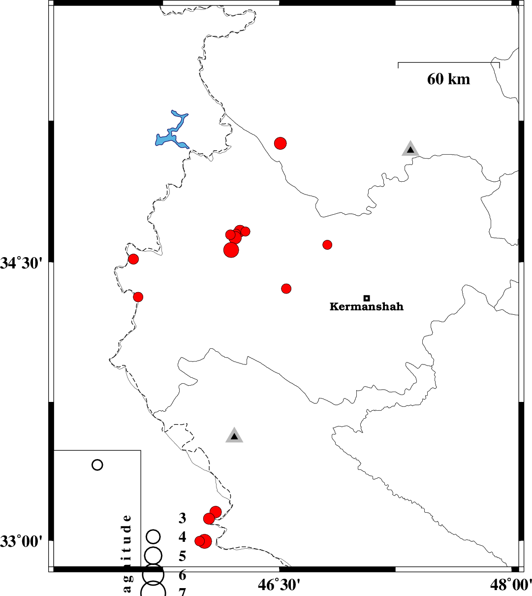 2018/09/24 | 04:42:18.3 | 08:12:18.3 | 34.591 | 46.811 | 15 | ML:2.7 | Kermanshah Province, 28 km South-West of Kamyaran | ||