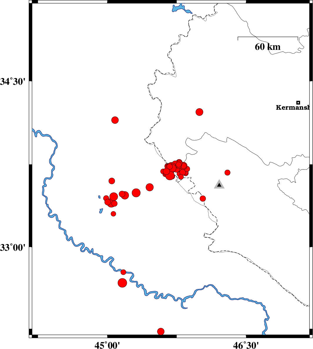 2018/09/24 | 04:42:18.3 | 08:12:18.3 | 34.591 | 46.811 | 15 | ML:2.7 | Kermanshah Province, 28 km South-West of Kamyaran | ||