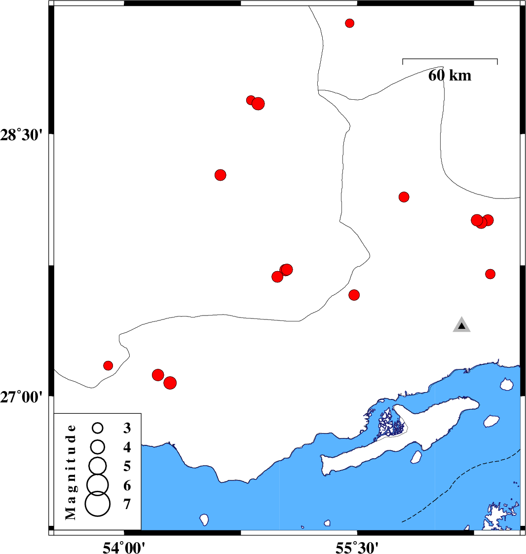 2018/09/14 | 07:18:44.3 | 11:48:44.3 | 27.58 | 55.479 | 6 | ML:3.1 | Hormozgan Province, 91 km South-West of Hajiabad | ||