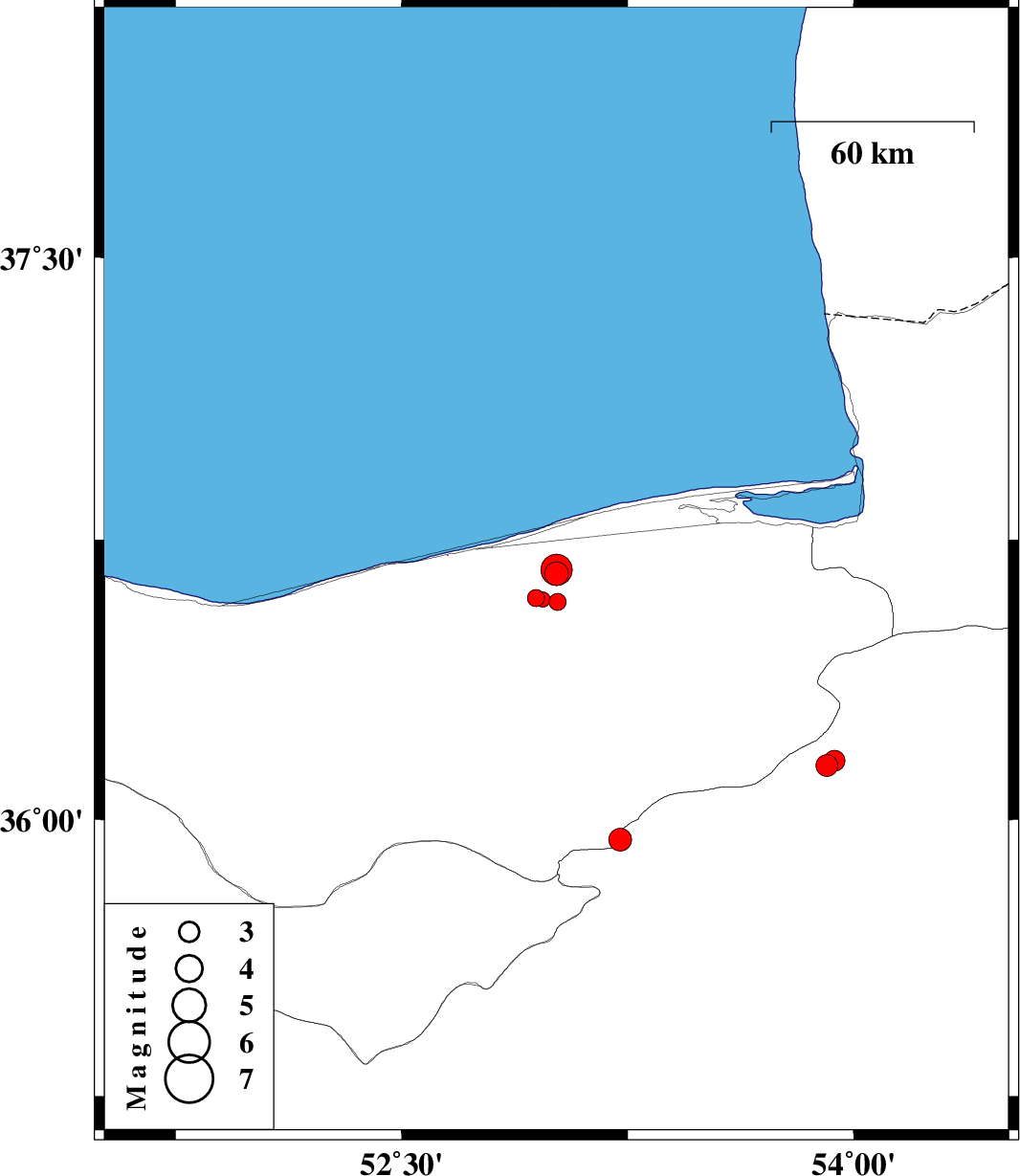 | 2018/09/25 | 02:30:06.3 | 06:00:06.3 | 36.584 | 53.017 | 14 | ML:2.6 | Mazandaran Province, 5 km of Sari | ||