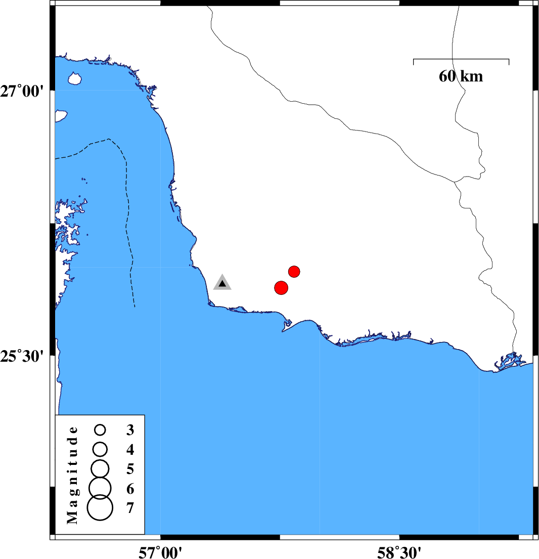 2018/09/16 | 11:49:51.7 | 16:19:51.7 | 25.884 | 57.758 | 27 | ML:3.8 | Hormozgan Province, 28 km North of Jask |