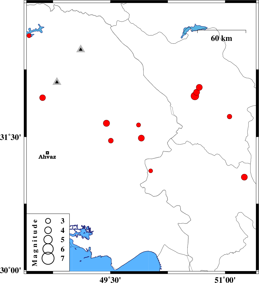 2018/10/03 | 09:30:26.7 | 13:00:26.7 | 31.937 | 48.614 | 15 | ML:3.5 | Khoozestan Province, 25 km South-West of Shushtar | ||