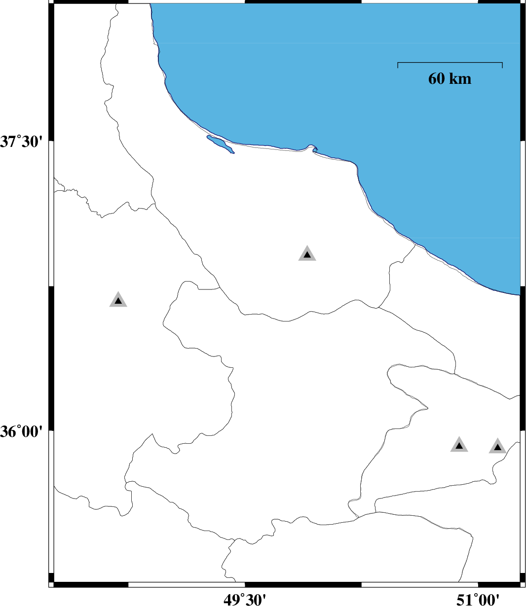 | 2018/10/01 | 03:16:03.2 | 06:46:03.2 | 36.965 | 50.761 | 14 | ML:2.2 | Caspian Sea, 12 km -East of Ramsar |