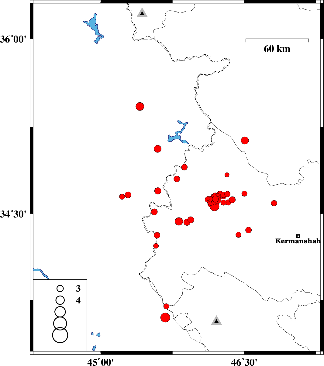 2018/10/09 | 09:42:19.2 | 13:12:19.2 | 34.697 | 45.596 | 14 | ML:3.1 | Iraq, 20 km North of Qasr-E-Shirin | ||