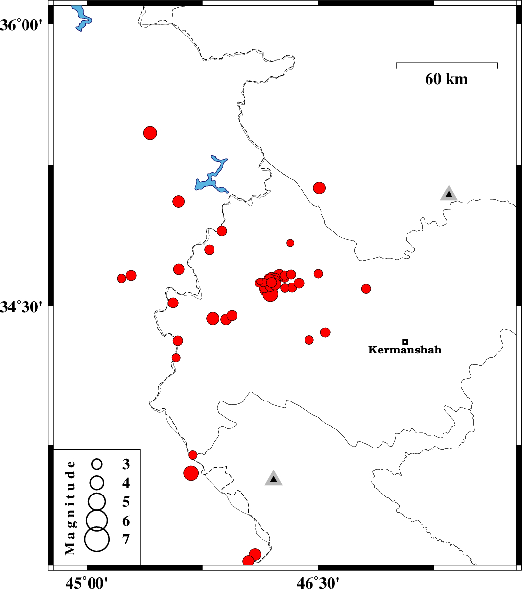 2018/09/30 | 23:49:24.6 | 03:19:24.6 | 34.564 | 46.189 | 15 | ML:4.4 | Kermanshah Province, 30 km -East of Sar-e pol-e zahab | ||